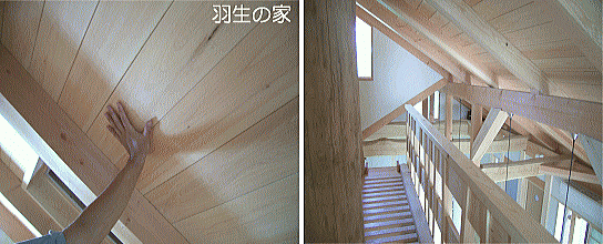 猛暑の中(外気温40℃弱)この家のロフトは熱くありません。(大木を三本柱に使った家) 上のロフトでは 熱気でムンムンするのかと思いましたが トップライトを開けてもいないのに体感温度は下と変わりませんでした。 天井のヒノキの板(厚み30mm)を触ってみても全く熱くありませんでした。 屋根の外断熱通気工法の威力は すごい効果がありました。 ちなみに 冬の寒い朝では 既存の20年前に建てられた別棟と比較して 5℃位違うようです。
