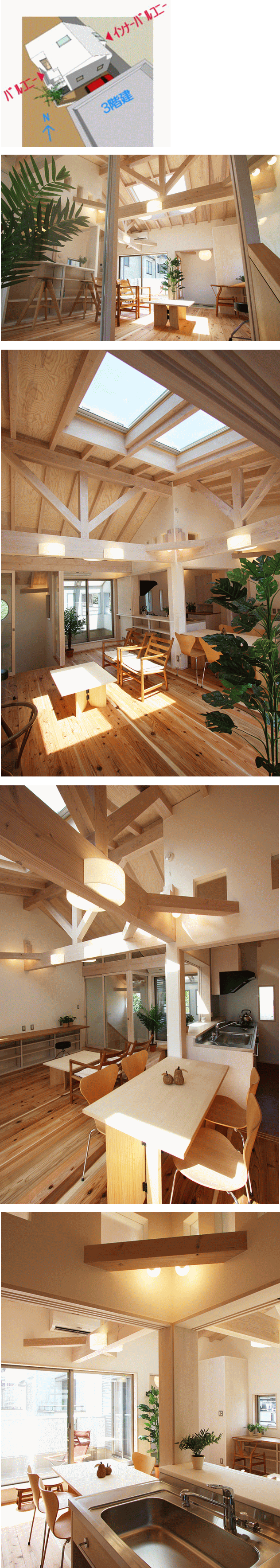 バルコニーを設置、 両サイドから陽を入れ、明るく開放