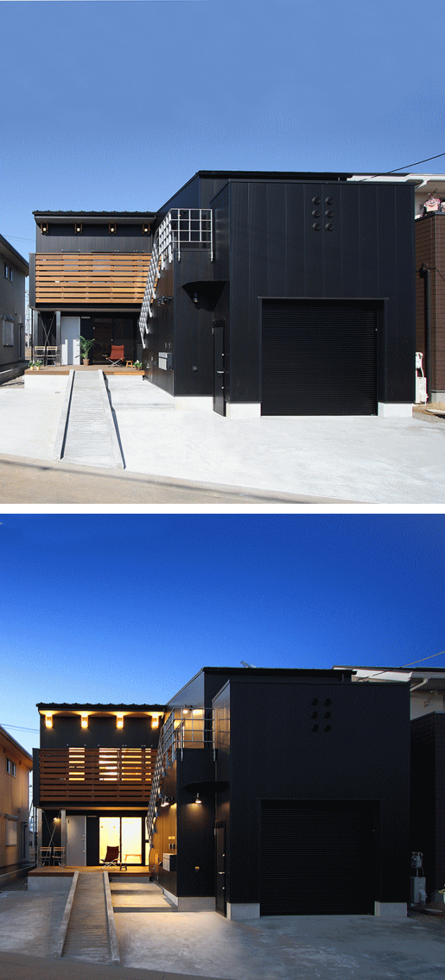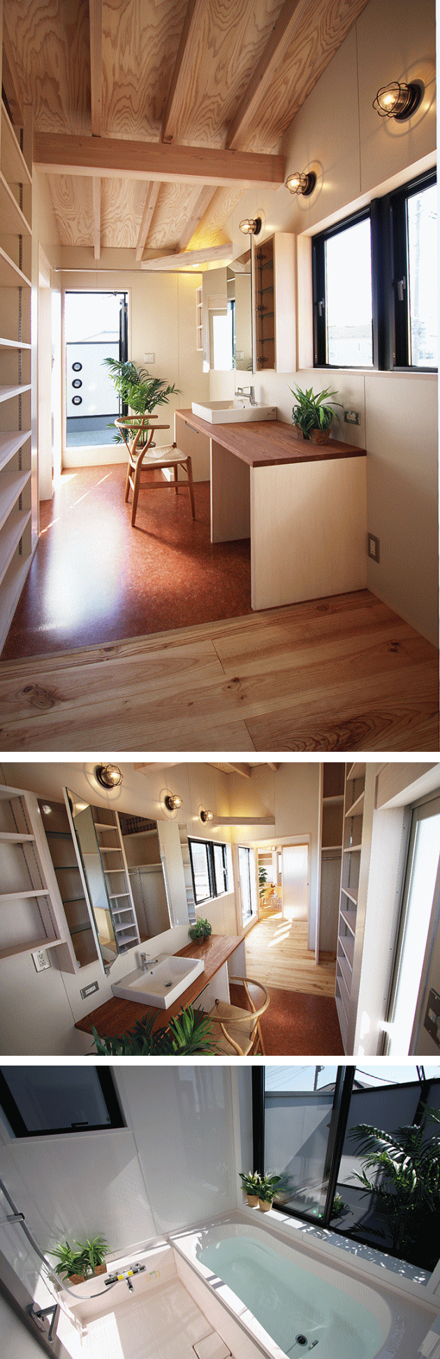ホノルルマラソンにも参加されたことのある、ご夫婦(2階子世帯)が、1階玄関 を通らず、2階洗面脱衣室から直接外階段を使って、ジョギングに行って帰って来 て、直ぐシャワーが浴びられる動線を創りました。
